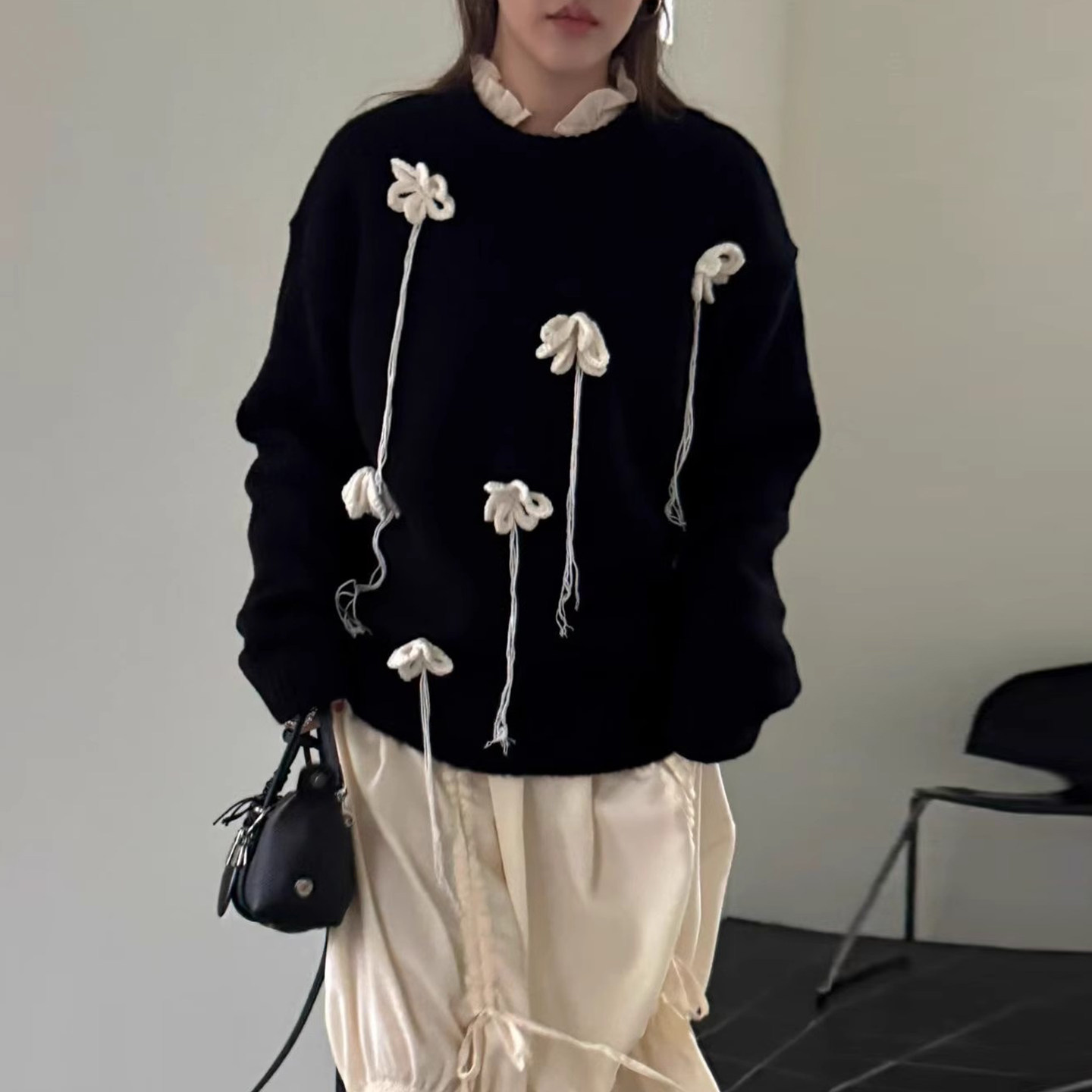 - 针织衫女套头刺绣长袖