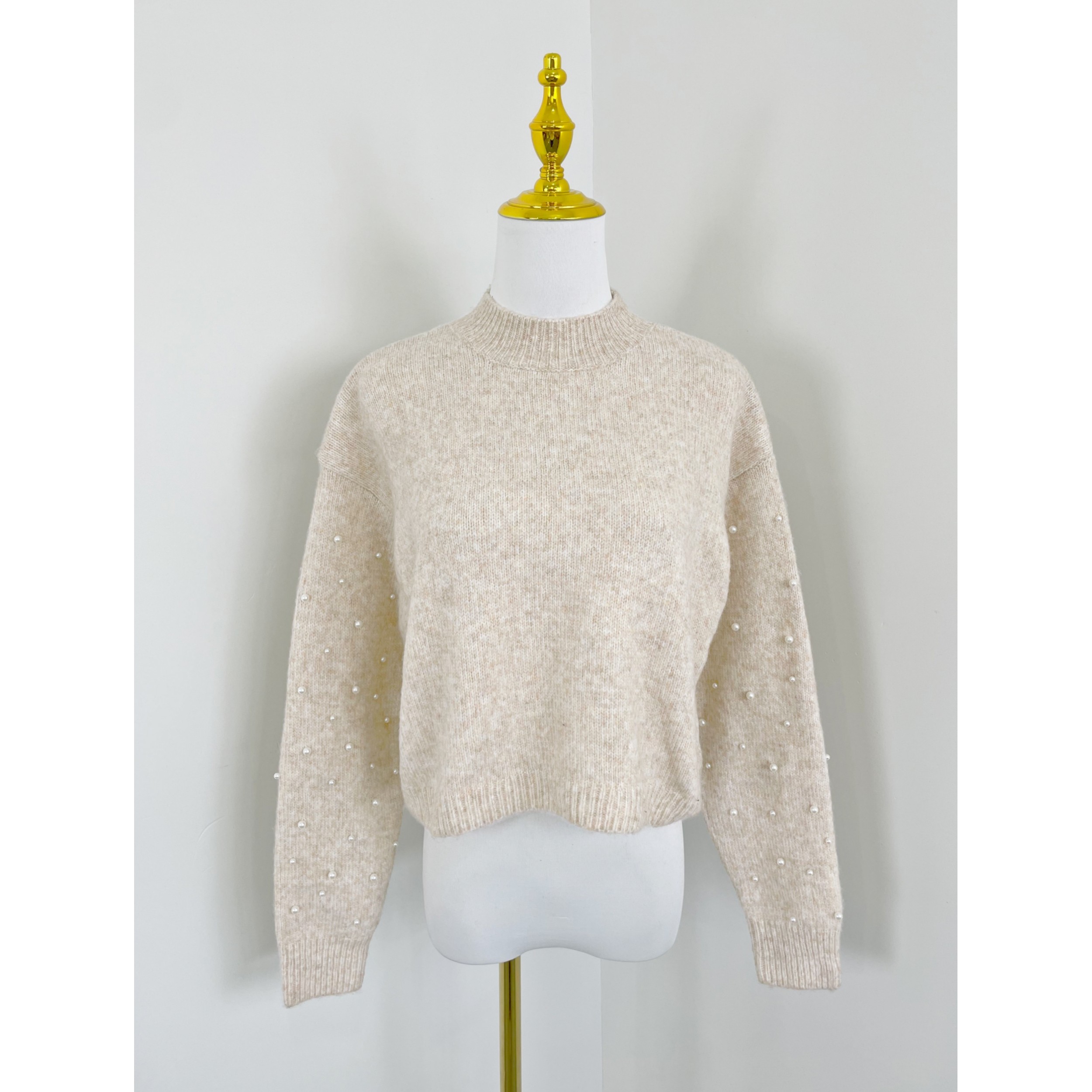 E2263外贸新款女装个性小众钉珠落肩袖羊毛衫半高领保暖短款毛衣