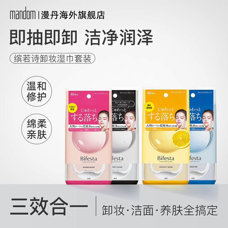 日本曼丹漫丹Bifesta缤若诗卸妆洁面湿巾清洁毛孔角质46片两件装
