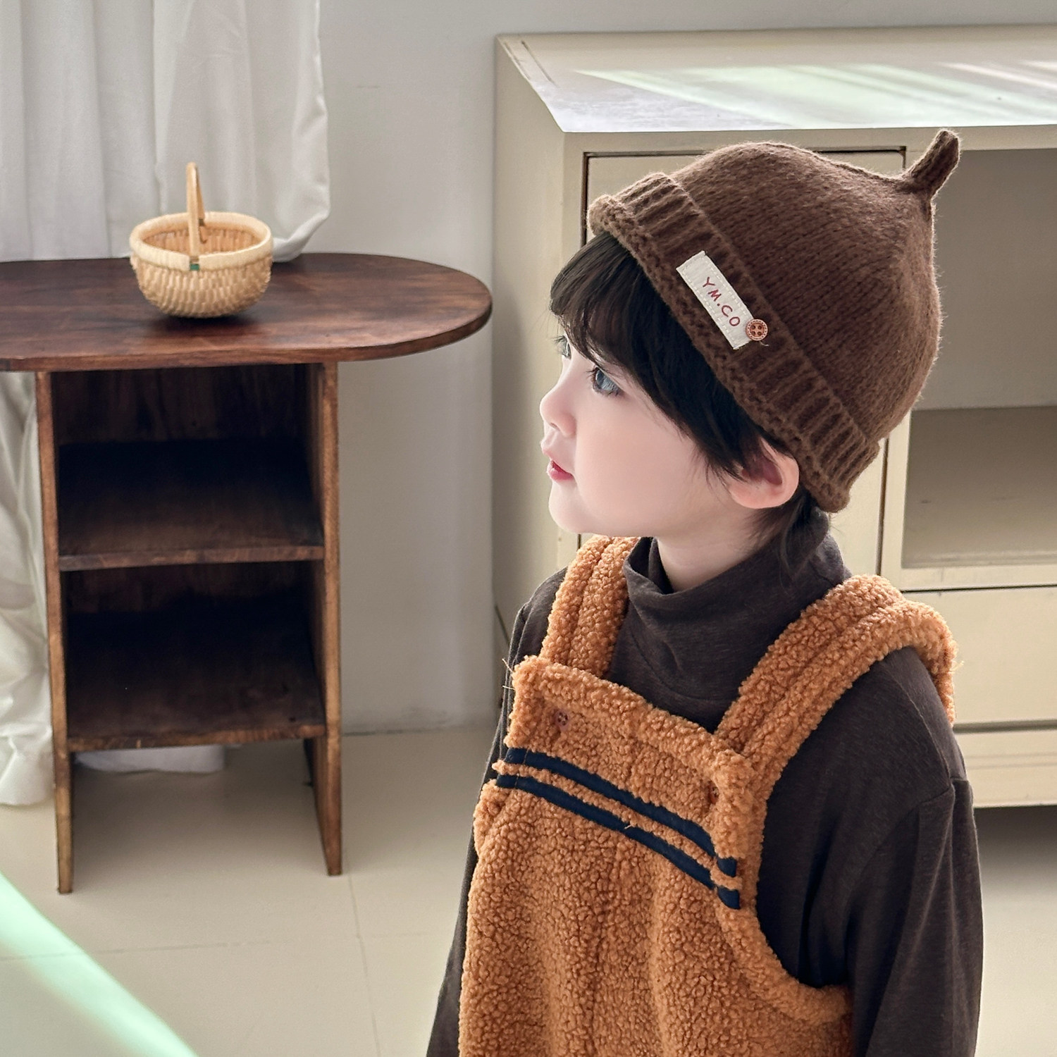 森系儿童帽子秋冬款针织瓜皮帽宝宝奶嘴帽男女童洋气毛线套头帽潮