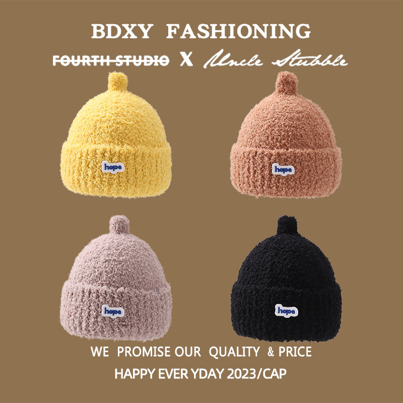 卷边毛线地主帽女秋冬雅痞保暖针织瓜皮帽日系街头时尚奶嘴帽子男