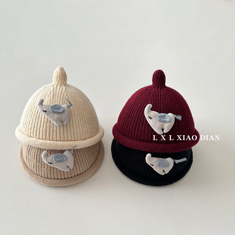 婴儿帽子秋冬季超萌可爱小飞象针织奶嘴帽男童女宝宝卷边毛线帽潮