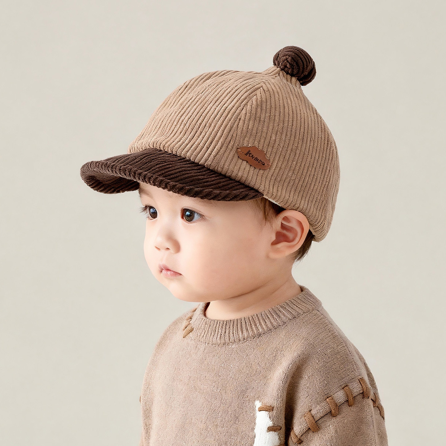 儿童帽子秋冬季保暖加厚灯芯绒鸭舌帽男女宝宝韩版奶嘴防风棒球帽