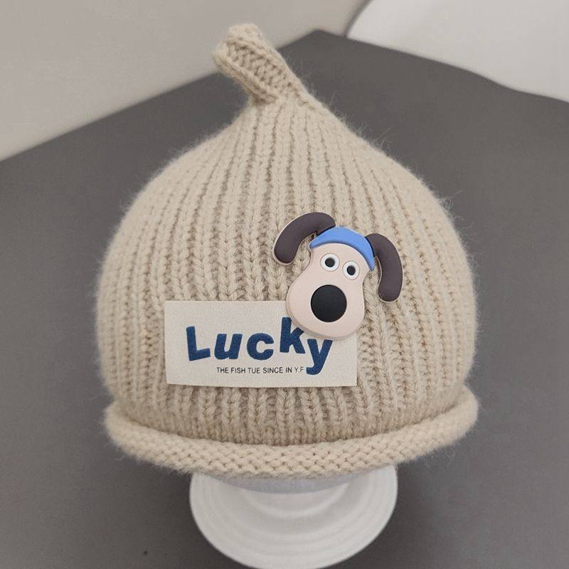 婴儿帽子秋冬季可爱超萌狗狗保暖奶嘴帽3-6个月小月龄宝宝毛线帽9