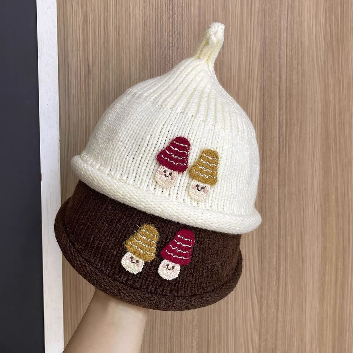 婴儿帽子秋冬超萌可爱小蘑菇针织奶嘴帽男女宝宝保暖防寒套头帽潮