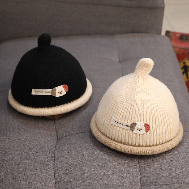 日系宝宝帽子秋冬款针织护耳帽男女童奶嘴毛线套头帽婴幼儿包头帽