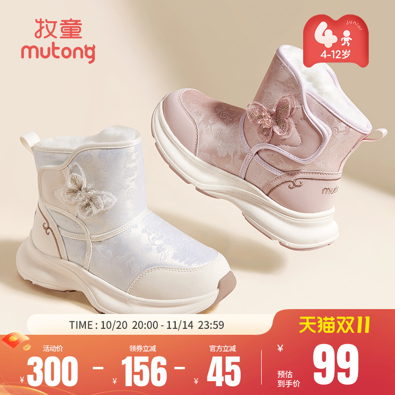 牧童女童雪地靴冬季新款儿童加绒加厚大棉靴子小女孩保暖公主棉鞋