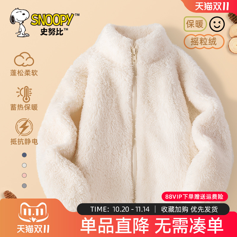 史努比童装儿童摇粒绒外套内胆男童加绒加厚冬装女童毛毛抓绒衣冬
