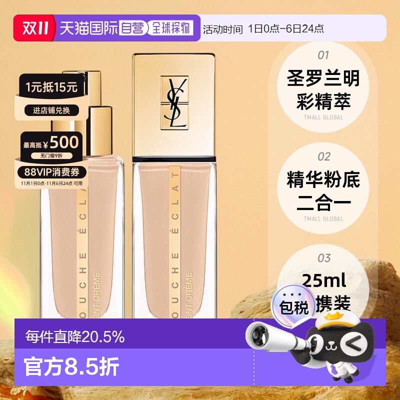 香港直邮YSL圣罗兰明彩精萃水粉霜模精华粉底霜正品自然持妆25ml