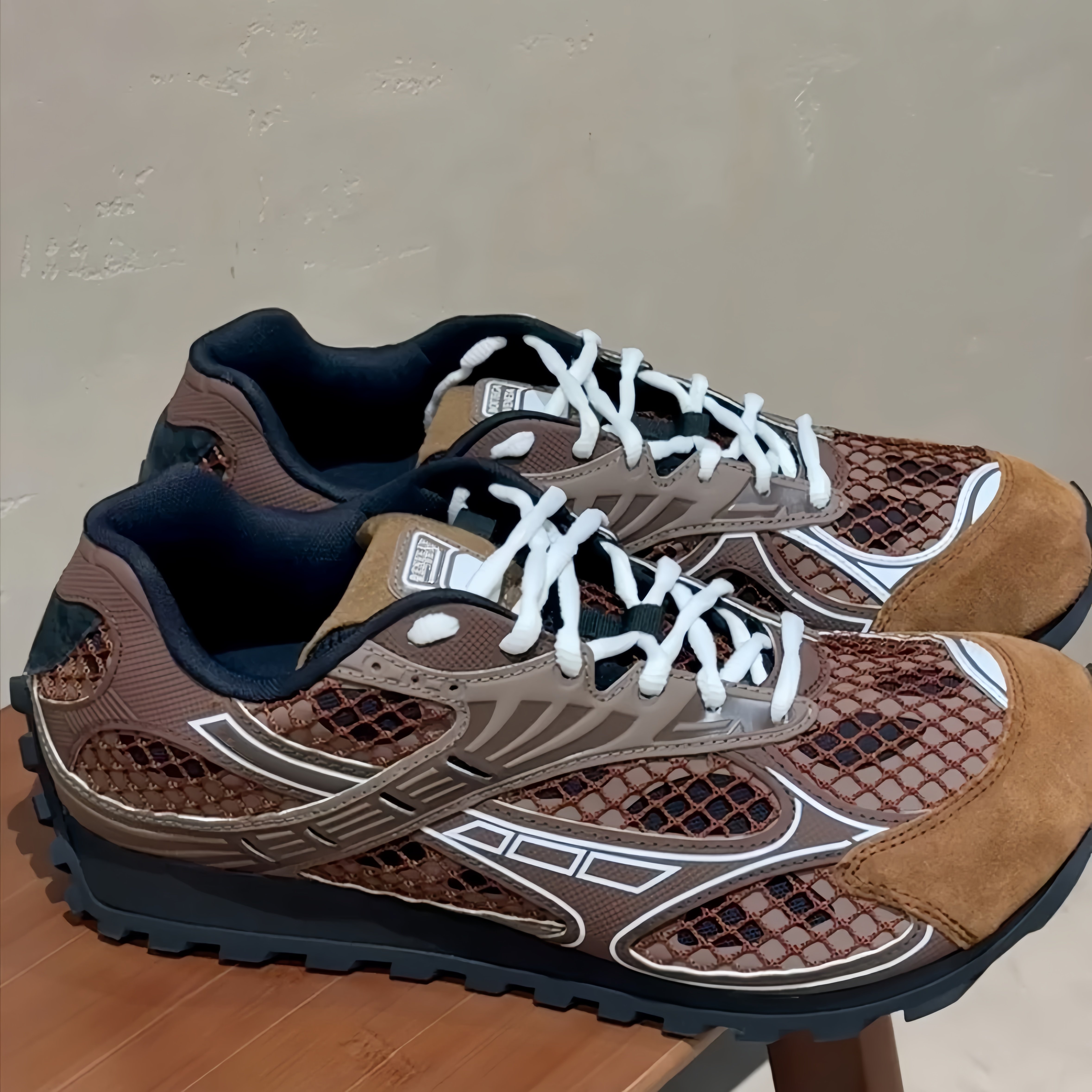 大东飞织鞋24春季新款休闲风中跟平底系带圆头运动鞋24C5052