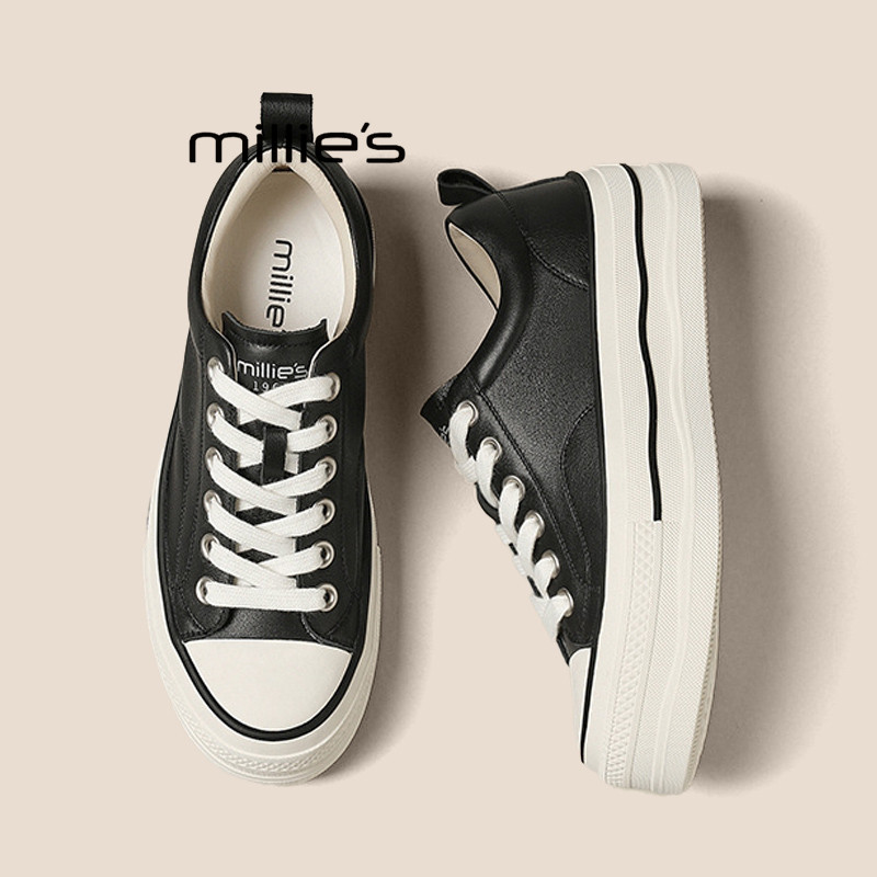 MILLIE'S/妙丽增高厚底休闲板鞋女2025冬季款圆头百搭圆头运动鞋