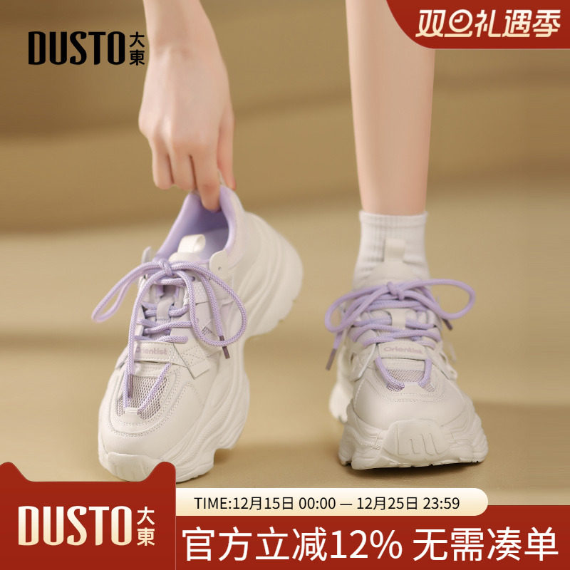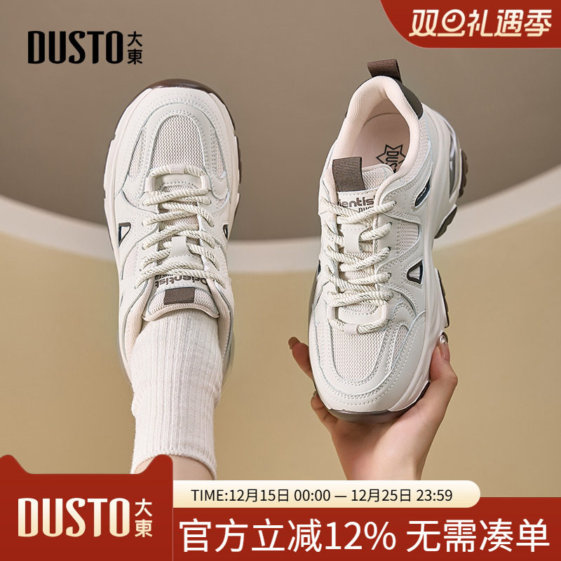 大东老爹鞋24秋季新款时尚休闲厚底中跟系带圆头运动鞋24Q1309
