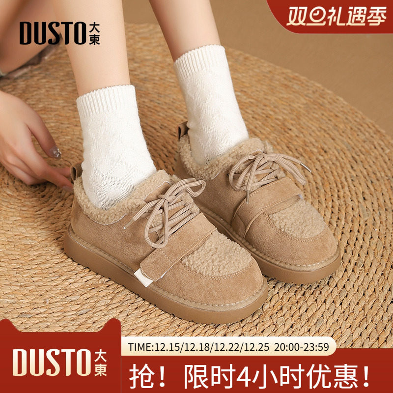 大东休闲鞋女鞋2025冬季新款时尚保暖加绒女短靴圆头运动鞋面包鞋