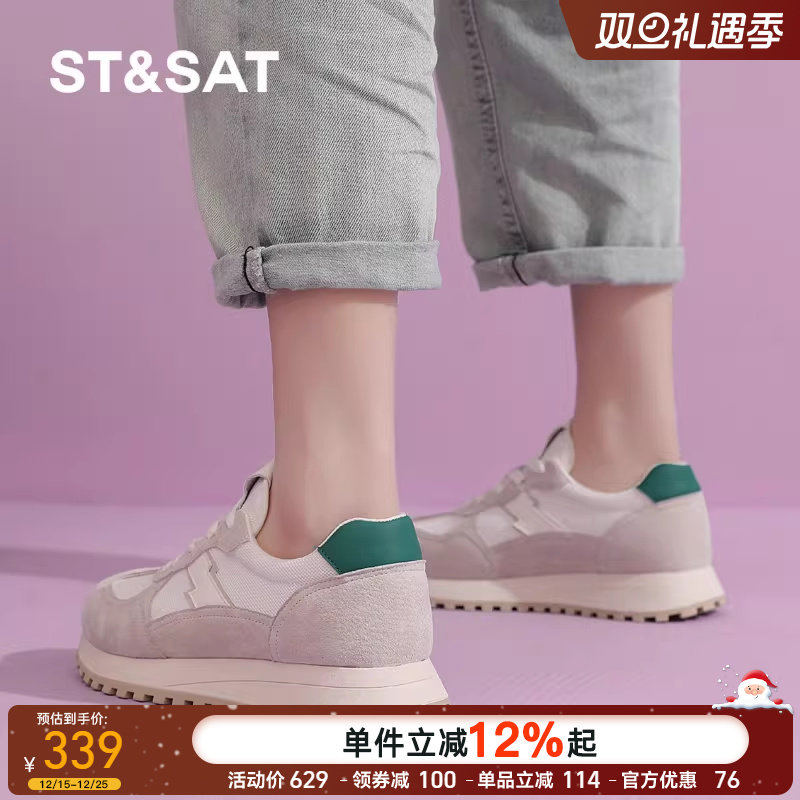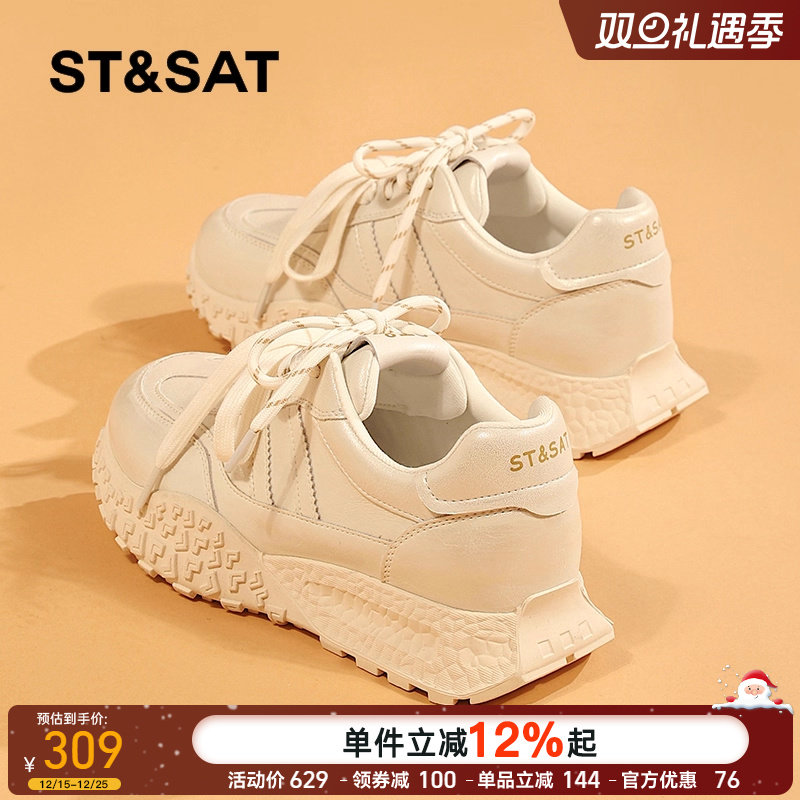 星期六厚底德训鞋女士春季新款百搭增高舒适休闲圆头运动鞋米白色