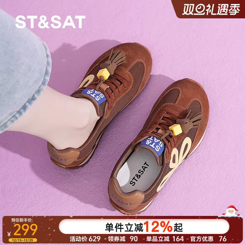 星期六复古德训鞋女春季款厚底内增高休闲圆头运动鞋时尚百搭舒适
