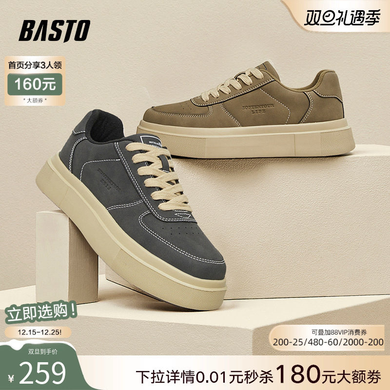 百思图秋冬季百搭休闲低帮运动鞋板鞋厚底圆头男鞋休闲鞋S886DAM4