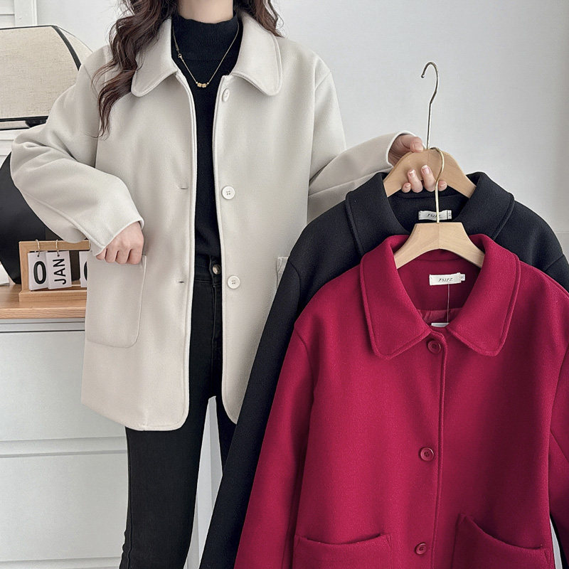 大码女装娃娃领毛呢外套120斤到240斤胖妹妹宽松显瘦洋气减龄上衣