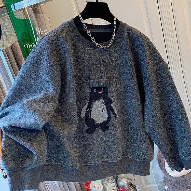 清仓捡漏~胖妹妹大码240斤女装洋气加绒加厚卫衣百搭减龄毛呢外套