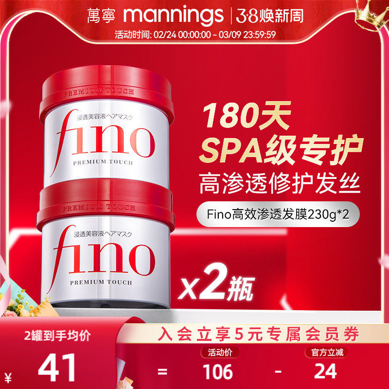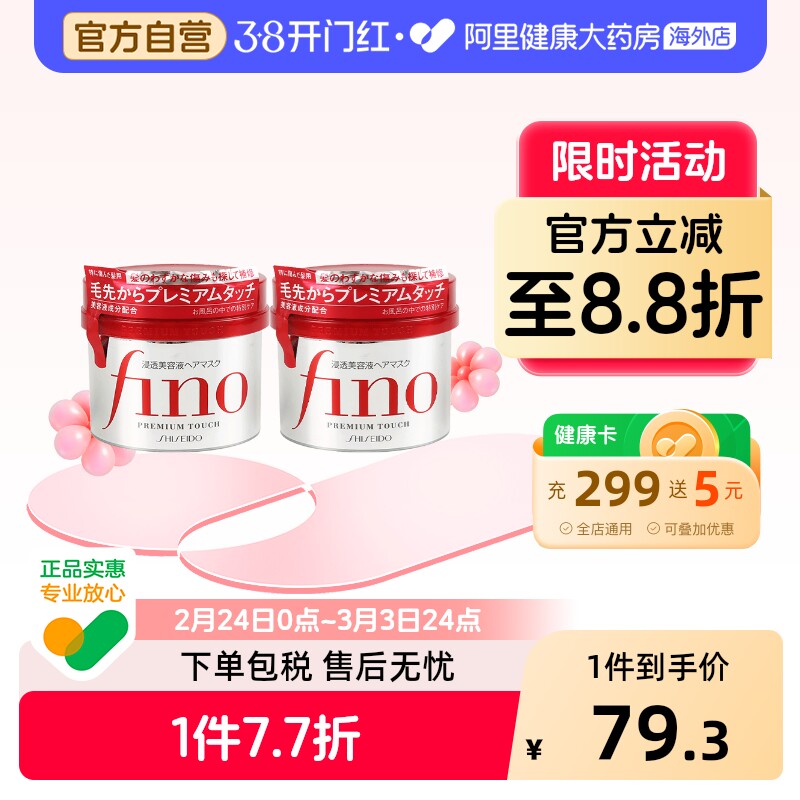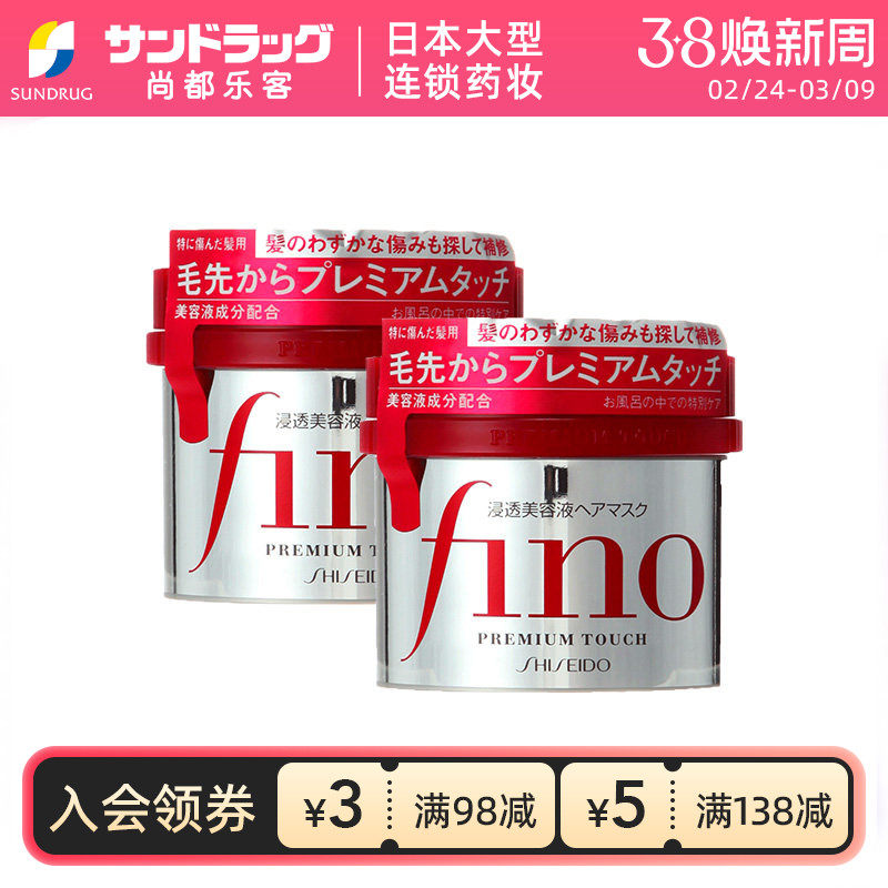 2瓶资生堂fino发膜芬浓护发素修复染烫受损改善毛躁干枯顺滑滋润