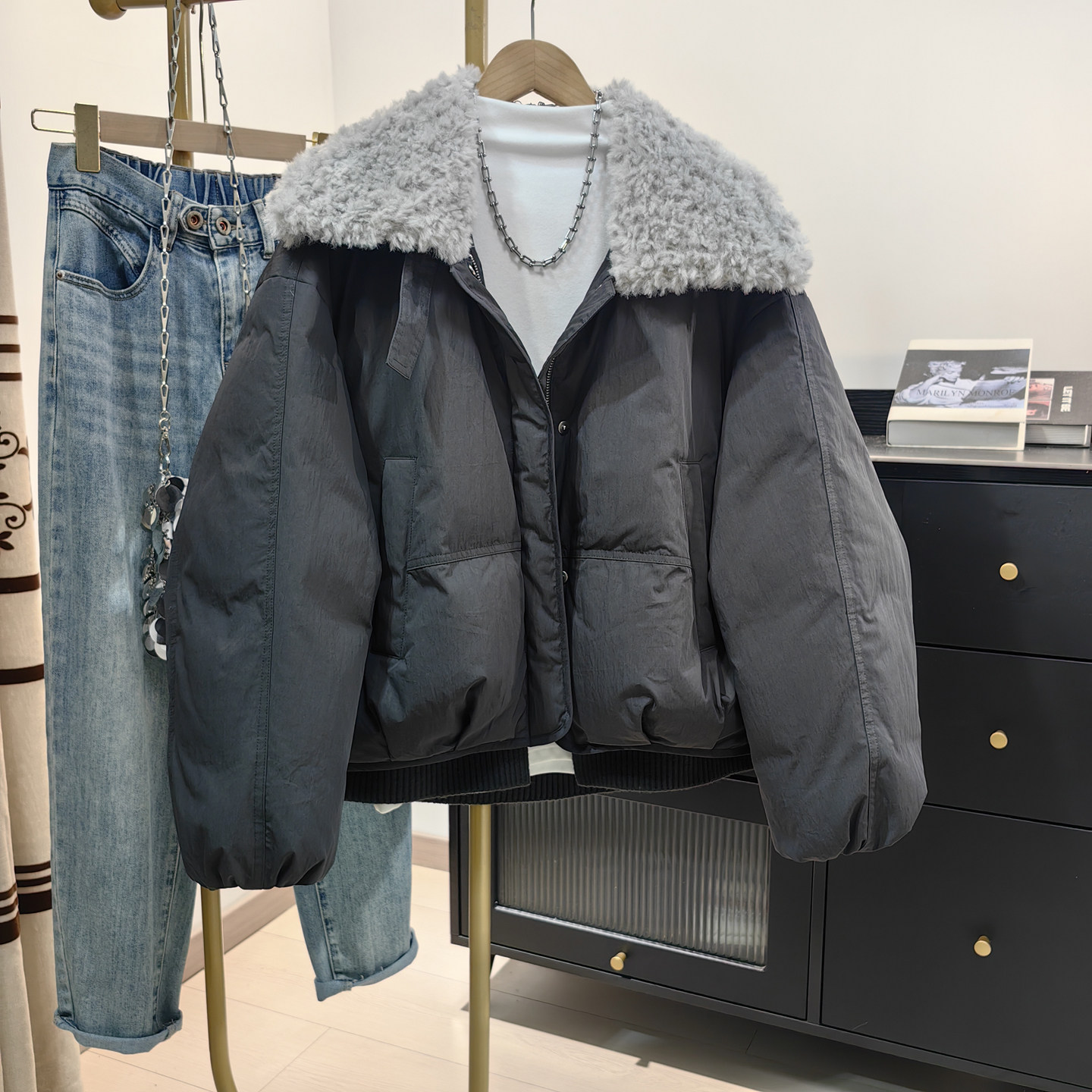 毛毛领短款羽绒服女冬新款韩系休闲工装风小个子时尚个性保暖外套
