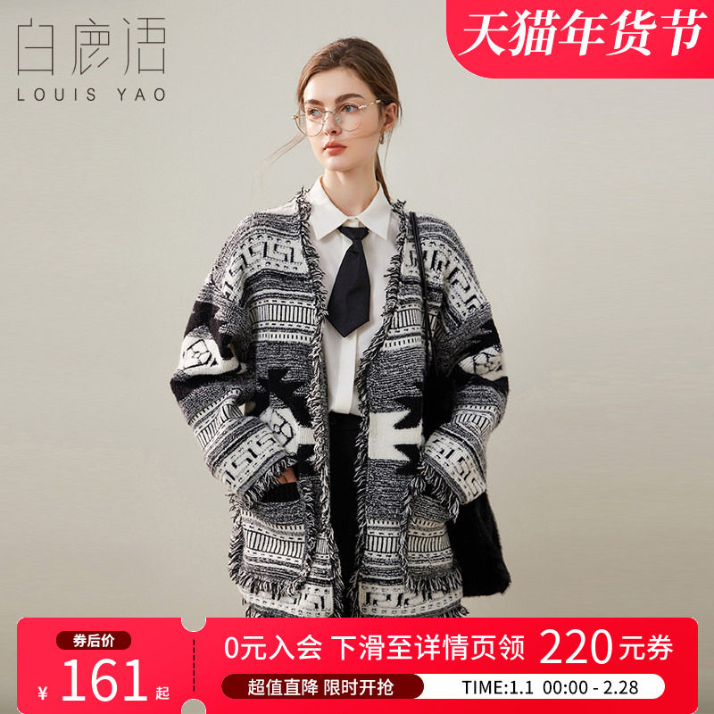 eihey诶嘿个性设计感绑带高领纽扣针织衫长款开衫上衣宽松外套女
