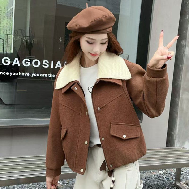 短款加棉毛呢外套女秋冬2025新款时髦设计感个性双领外套上衣呢子