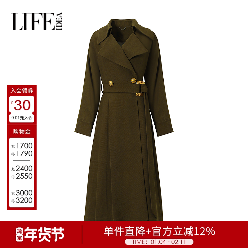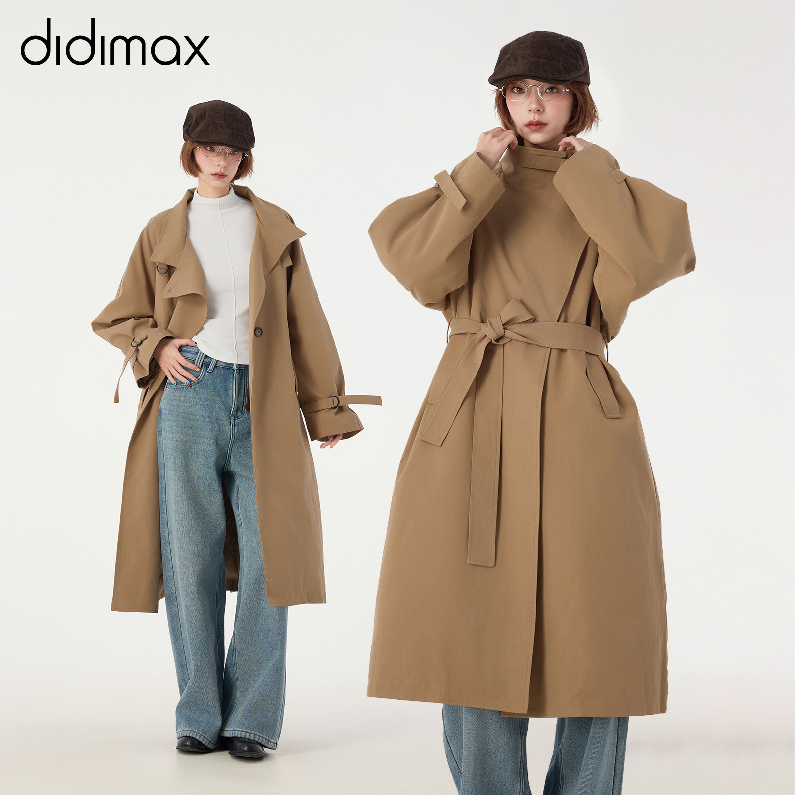 didimax冬季新款卡其色风衣长款羽绒服 个性外套女收腰W36426