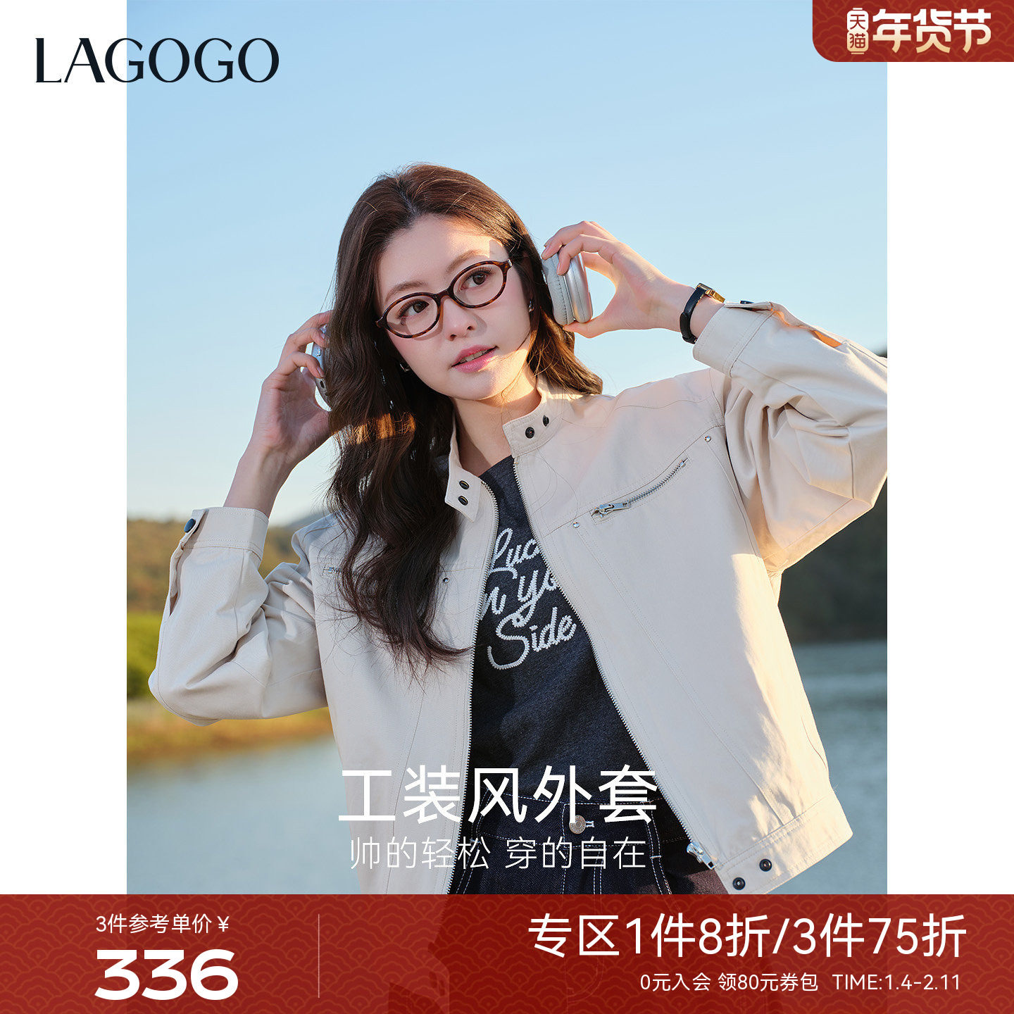 LAGOGO砂屿飒行立领个性简约外套女拉谷谷2026春新款甜酷夹克上衣
