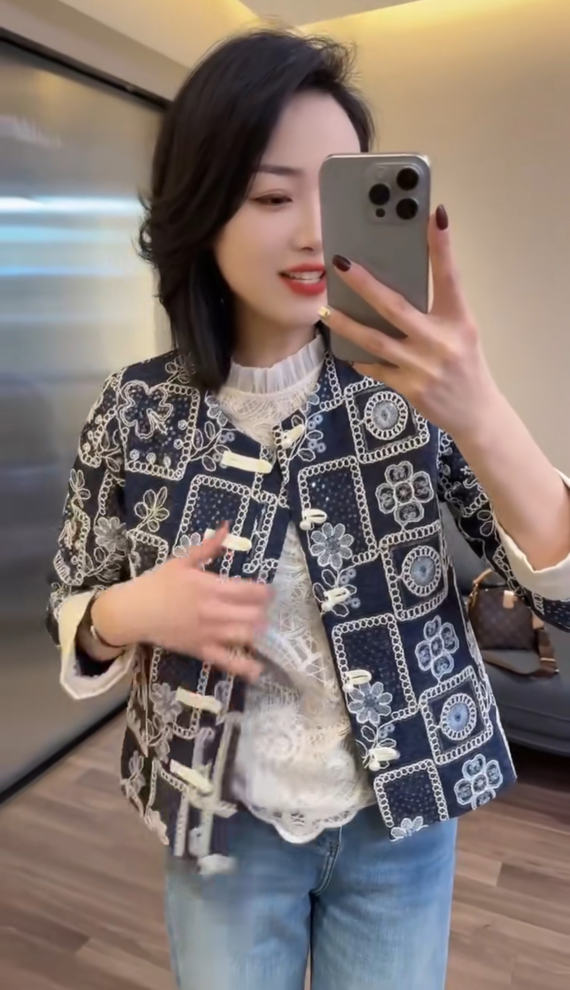 新中式国风盘扣重工个性外套女2026春季新款高端洋气百搭烫钻上衣