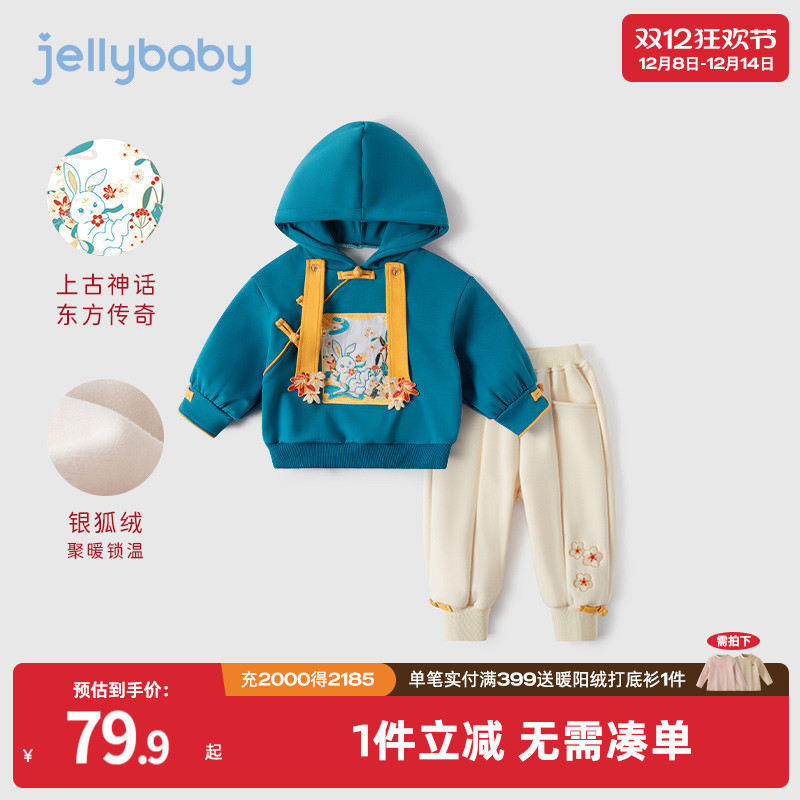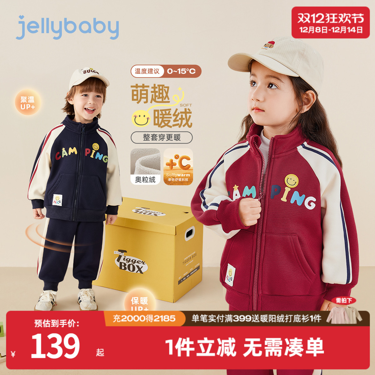 EBAER儿童运动套装秋冬新款2025男童女童加绒保暖外套裤子两件套