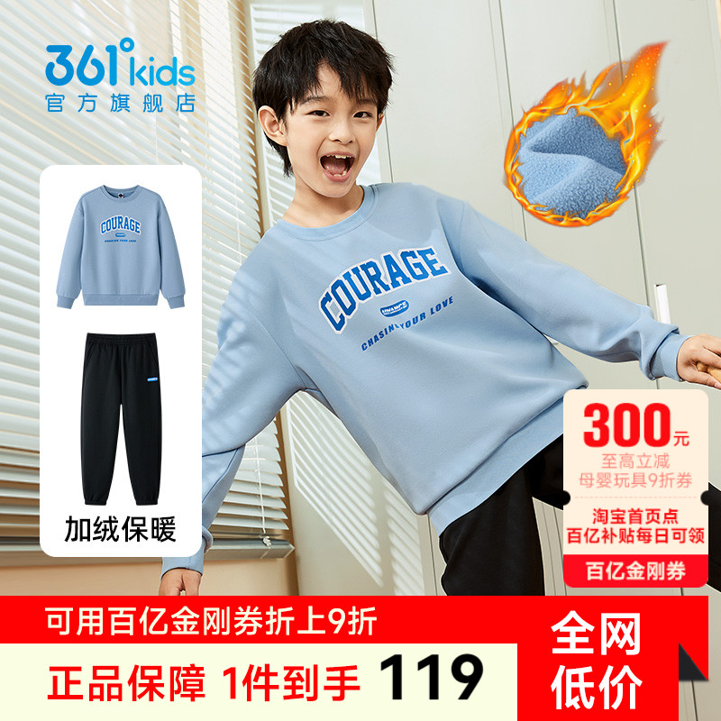 361度童装男童套装冬季新款儿童衣服女童卫衣长裤运动加绒两件套