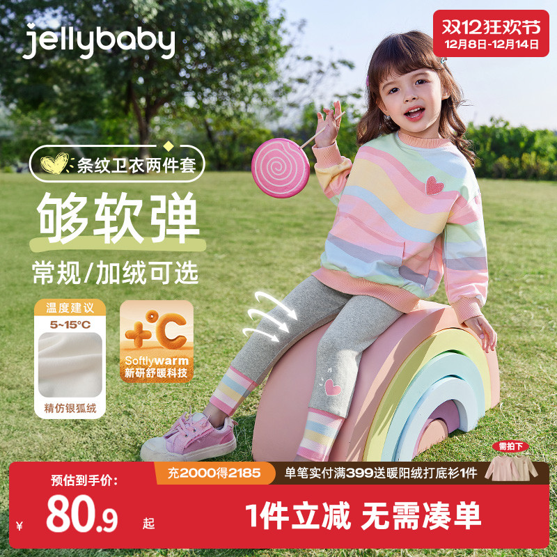 英氏女童加绒套装2025秋冬新款儿童休闲运动卫衣卫裤学院风两件套