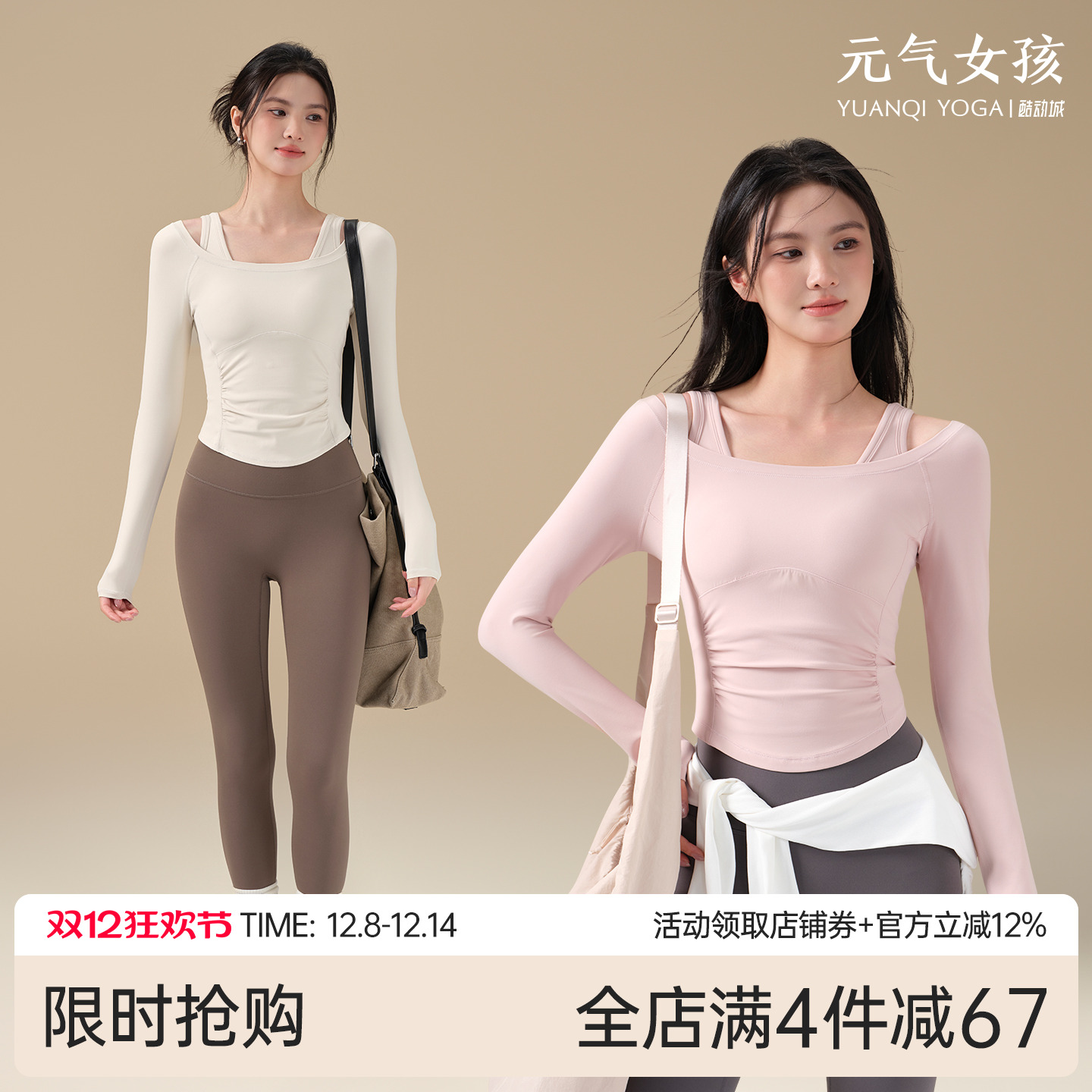 瑜伽服女假两件秋冬运动上衣长袖带胸垫好看普拉提训练服健身套装