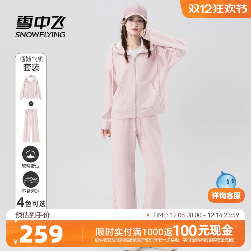 雪中飞加绒运动套装女2025秋冬加厚绒保暖开衫外套休闲裤两件套PC