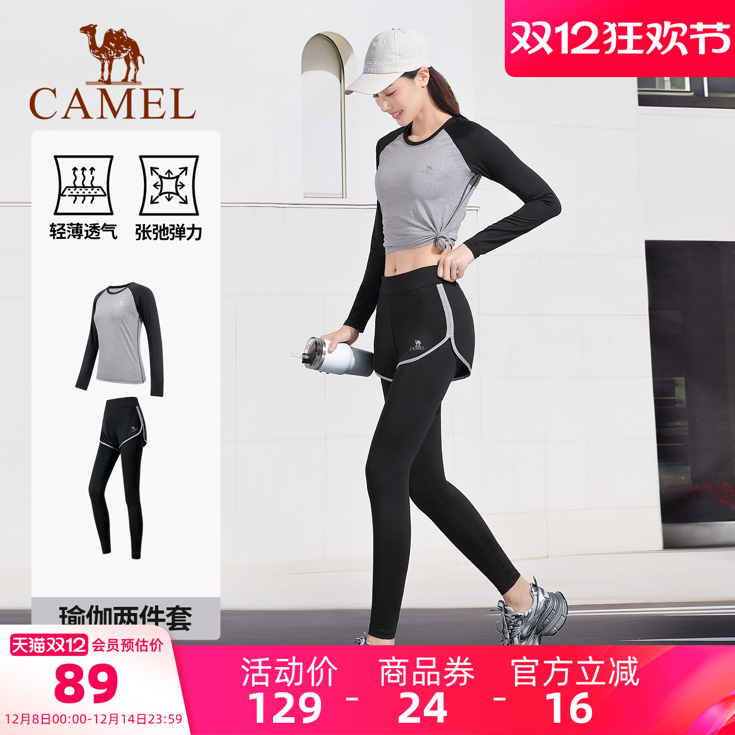 骆驼瑜伽服女士款套装秋冬跑步服上衣健身服长袖休闲运动服两件套