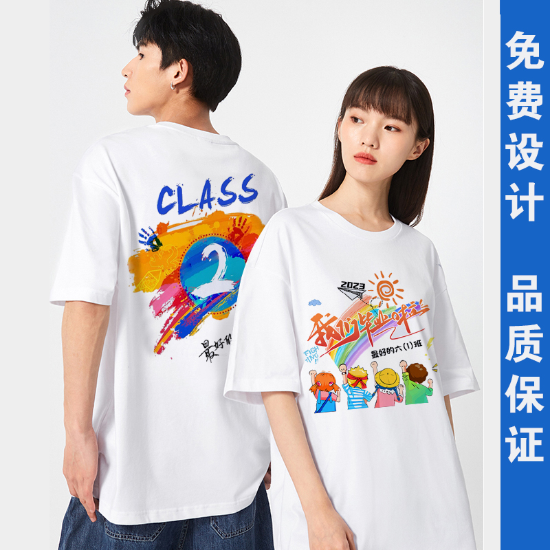 毕业班服定制t恤纯棉短袖DIY运动会同学聚会文化衫初中小学六年级