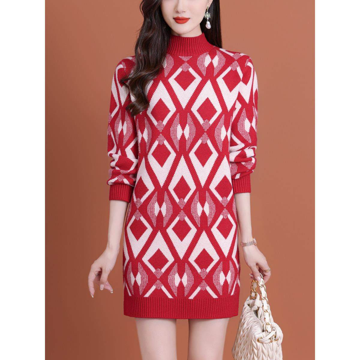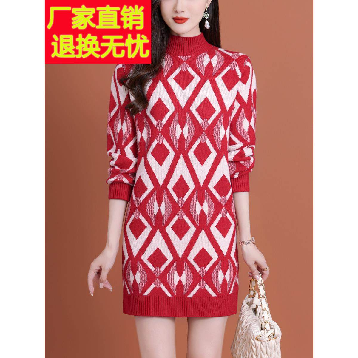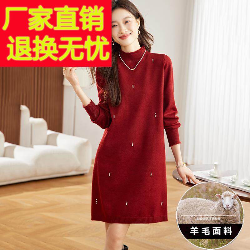 - 毛衣裙女秋冬款长款 宽松
