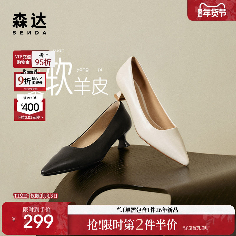 森达羊皮尖头高跟鞋简约优雅职场通勤工作鞋女鞋浅口单鞋女ZTC02