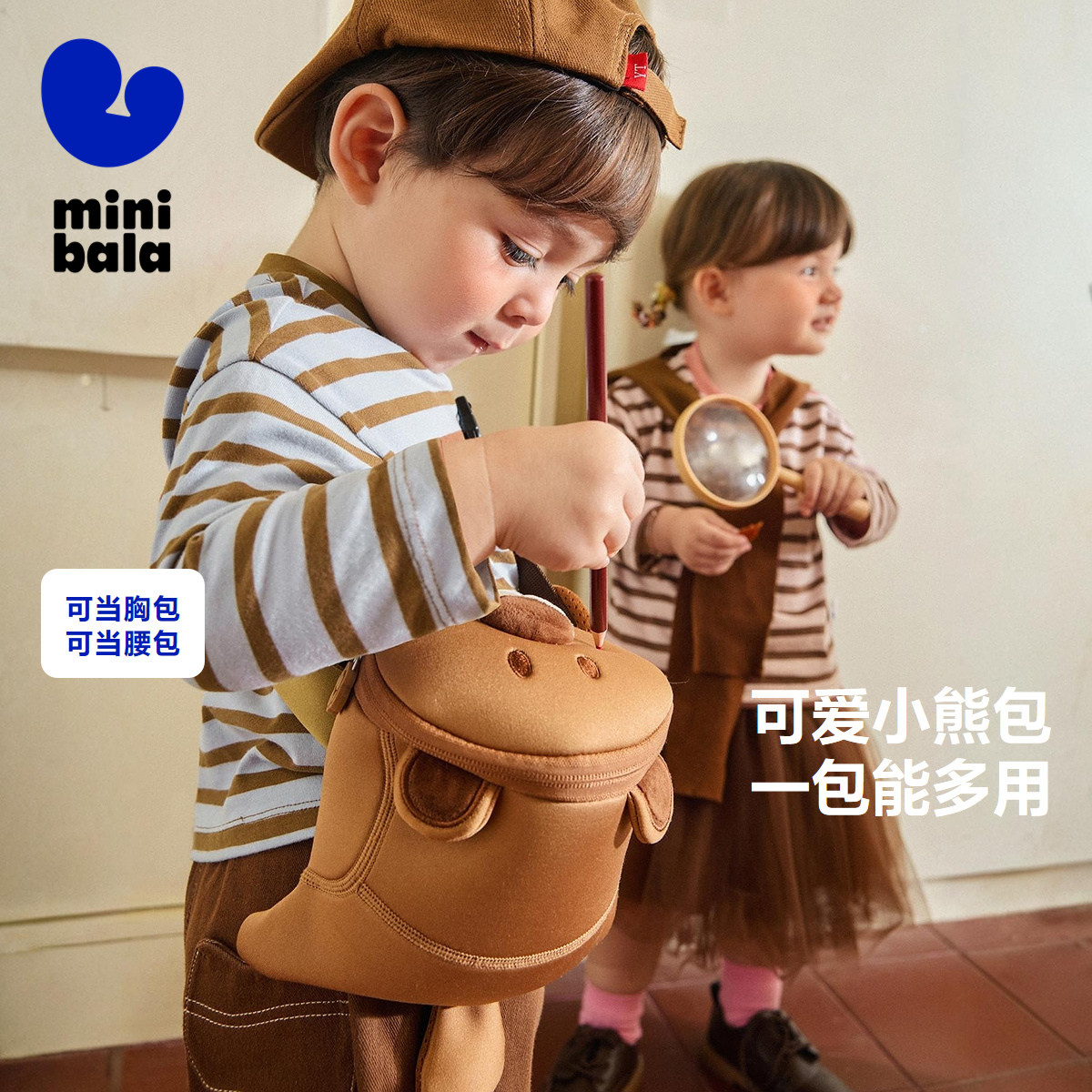 迷你巴拉巴拉儿童挎包可爱小熊造型男女童背包宝宝新款萌趣腰包潮