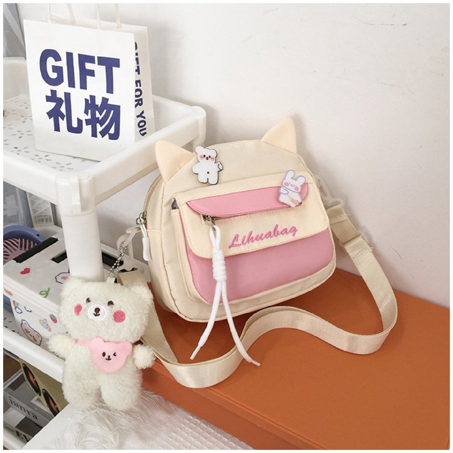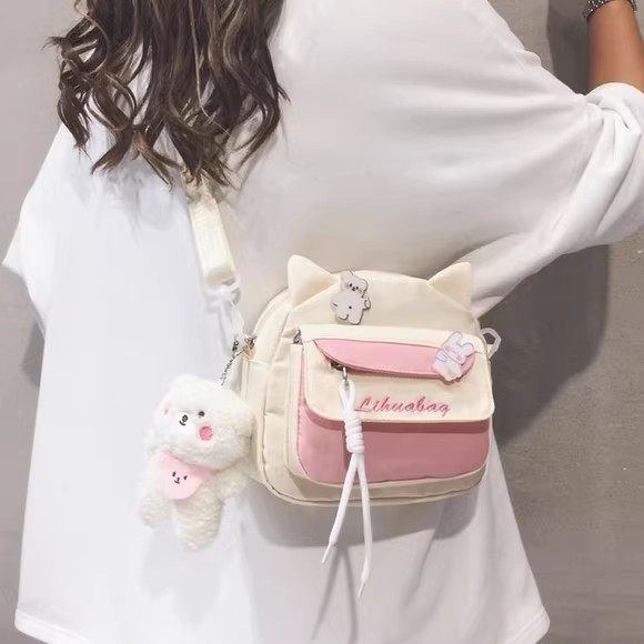 多巴胺斜挎包少女小包包2025新款撞色可爱外出背包女学生儿童挎包