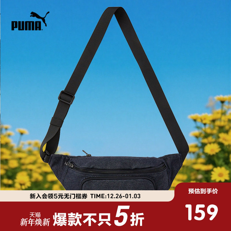 PUMA彪马童装秋季新款儿童挎包男童女童牛仔包休闲潮酷耐磨腰包