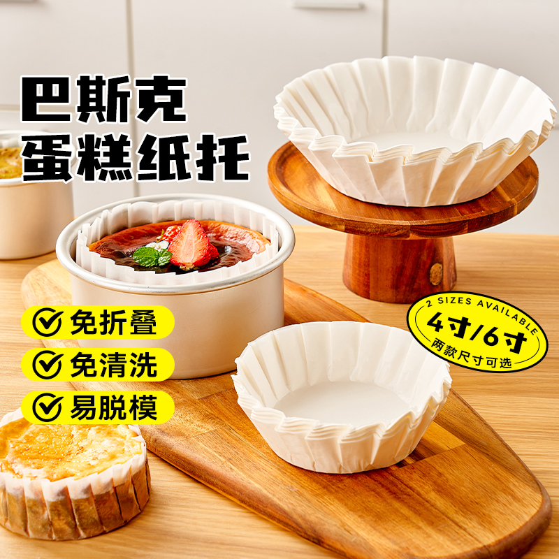 展艺巴斯克油纸戚风蛋糕烘焙纸托4寸6六模具一次性包装盒脱模专用