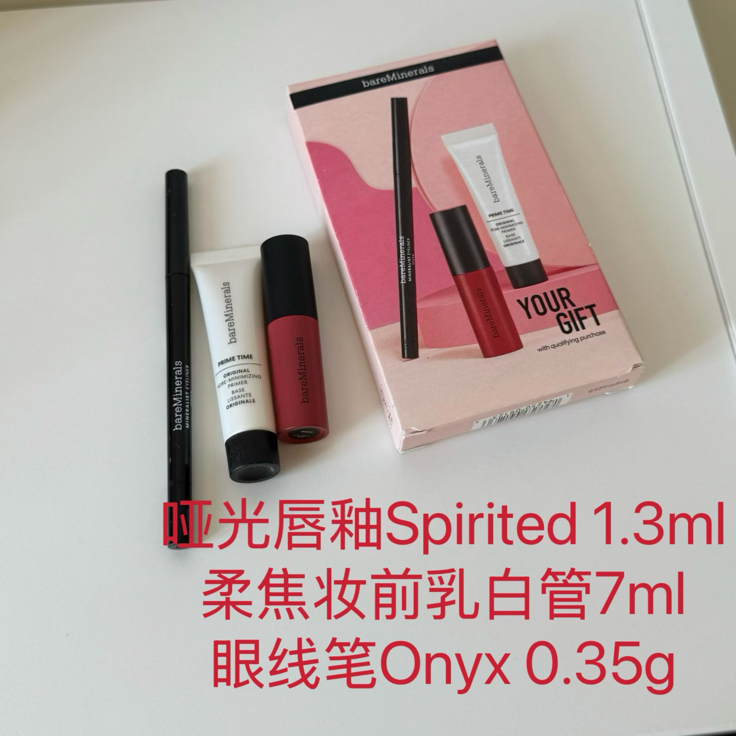 现货bareMinerals/贝茗 妆前乳+唇釉+眼线笔 小样彩妆套装