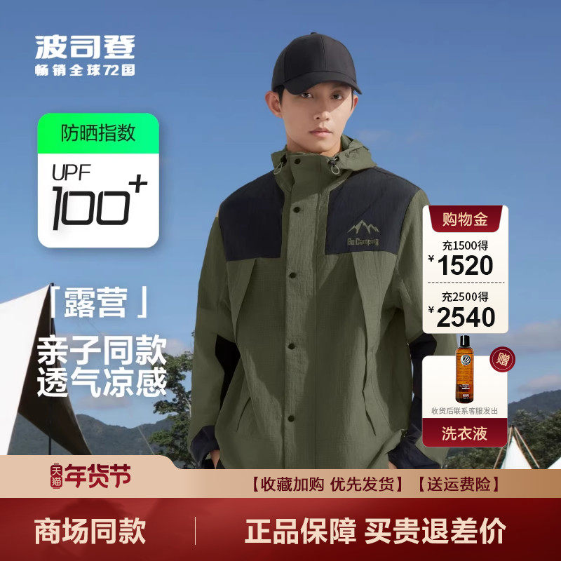 波司登夏季户外遮阳防紫外线UPF40+透气舒适钓鱼连帽防晒衣情侣款
