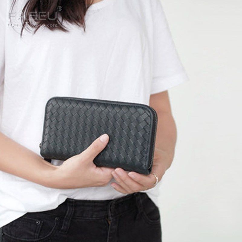 易游2024年秋冬新款女长款钱包真皮拉链男大容量日韩风编织手拿包