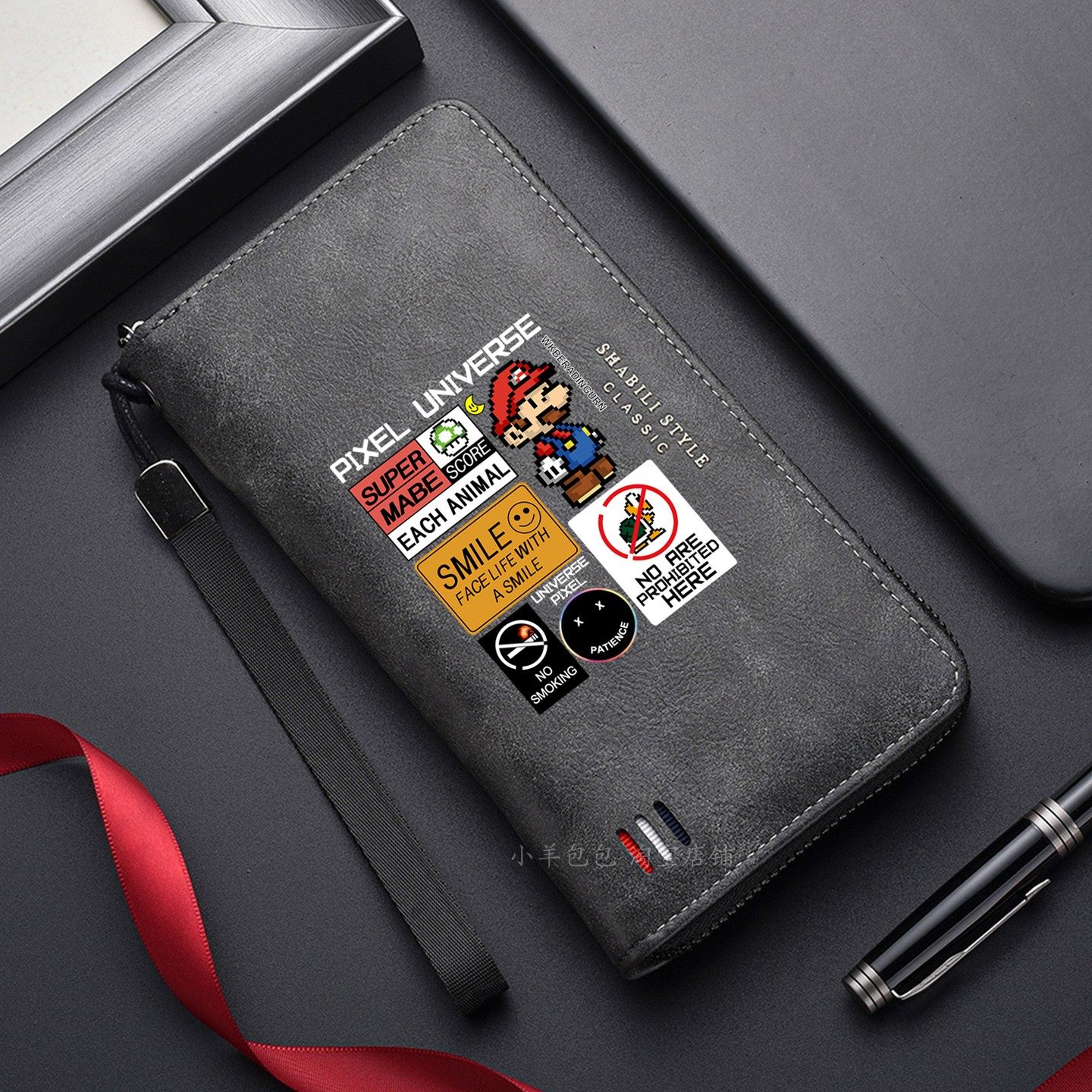 马里奥长款钱包男款日韩风潮青年学生大容量拉链零钱包卡包手拿包
