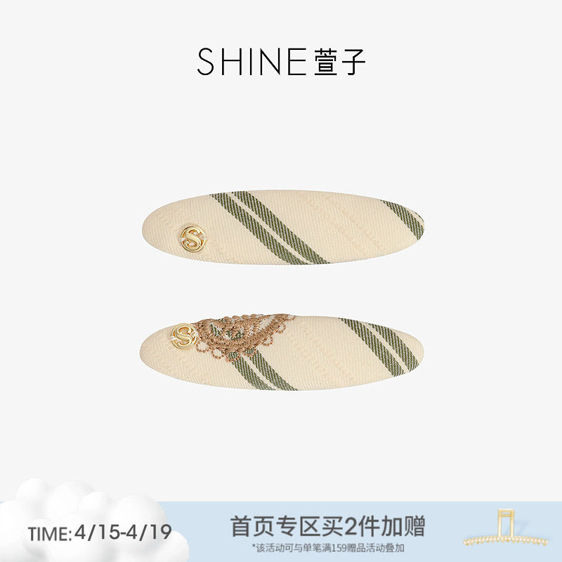 SHINE萱子饰品优雅百搭白绿条纹边夹撞色发夹小巧夹子早春新款