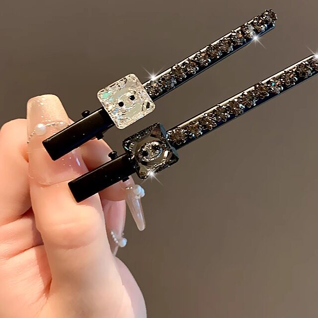 发夹女高级感超闪水晶串珠鸭嘴夹一字夹时尚百搭刘海边夹甜美发饰