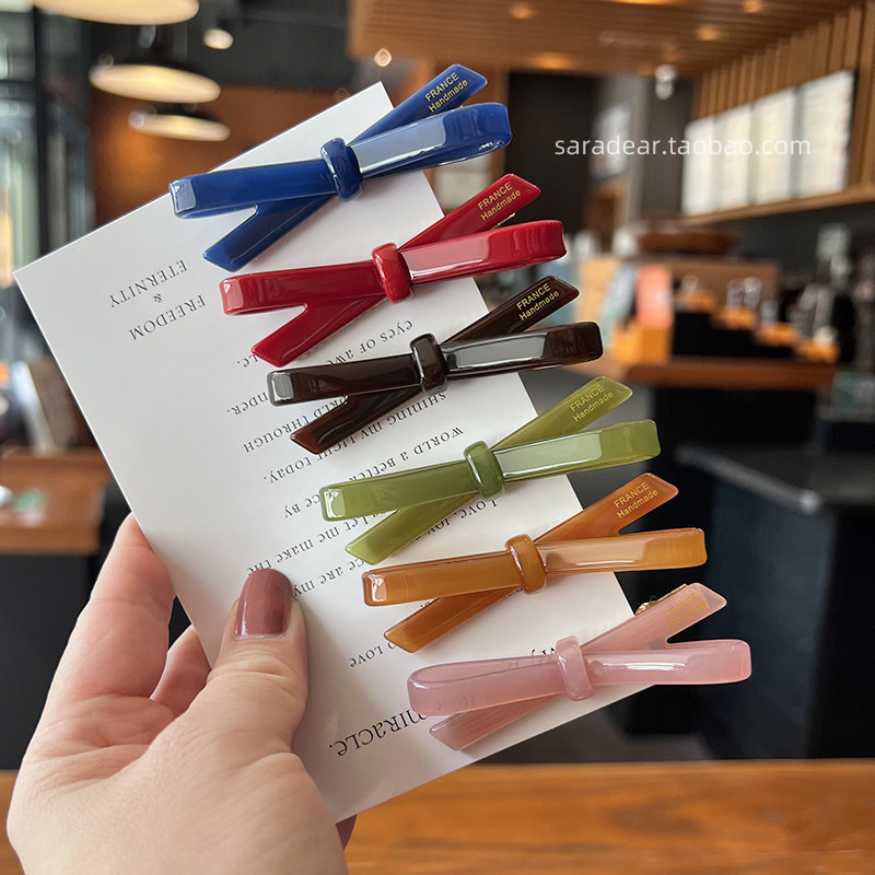 韩国进口France金标立体蝴蝶结一字刘海夹鸭嘴夹法式百搭侧边夹子
