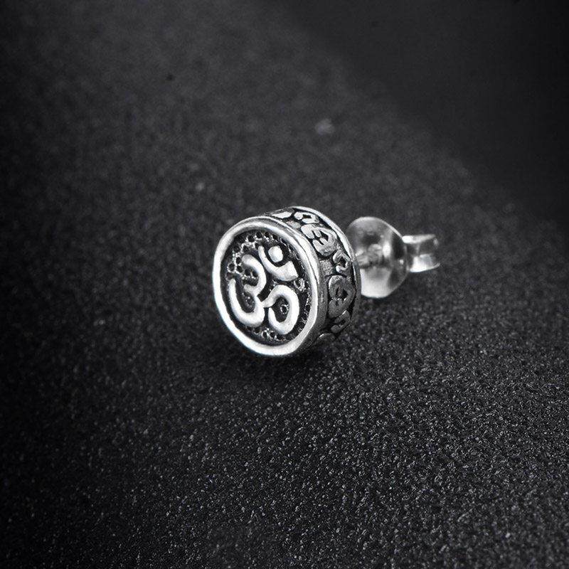 银の曼925银潮男耳钉单只个性圆形圣音OM字简约欧美复古男士耳饰